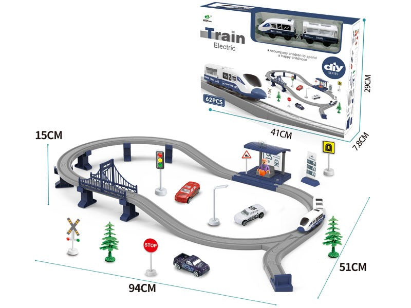 B/O RAILWAY TRAIN 63PCS(WITH PLATFORM) W/SOUND/LIGHT/LR41 BATTERY